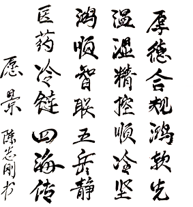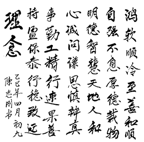 企業(yè)創(chuàng)始人兼總經(jīng)理陳志剛先生以書法藝術(shù)形式親筆書寫企業(yè)理念、使命及愿景。