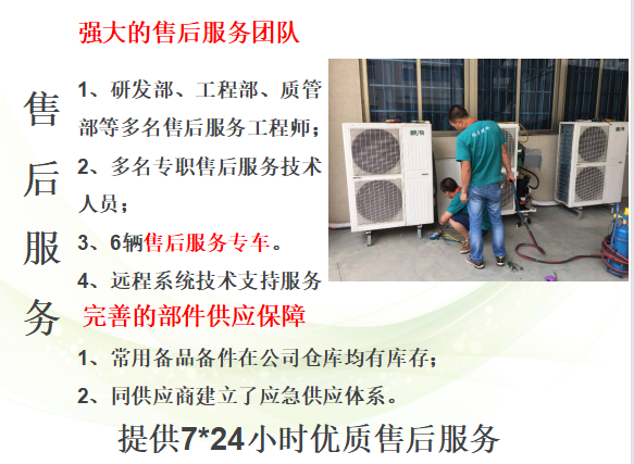 “ 顧客至上優(yōu)質(zhì)服務(wù)品質(zhì)保障”是廣東順景制冷科技有限公司的宗旨。我司建立了一套完善的售后服務(wù)體系,設(shè)有專業(yè)的售后服務(wù)部門,其以售后服務(wù)工程師為主、專業(yè)技術(shù)員為輔,以確保售后服務(wù)的技術(shù)保證。在以廣州總部的售后服務(wù)部為服務(wù)中心的同時(shí),在廣西南寧/柳州設(shè)有售后服務(wù)辦事處,并且在桂林、北海、玉林、河池、廣東湛江、東莞、惠州、梅州、廣西柳州、湖南長(zhǎng)沙、邵陽(yáng)、懷化、湖北黃岡、福建廈門、海南博鰲等城市有我司的售后維修固定合作伙伴。所有售后服務(wù)點(diǎn)均由廣州總部的售后服務(wù)部統(tǒng)一協(xié)調(diào)和管理,確保我司的售后服務(wù)質(zhì)量。我司固定售后維修車輛5輛,固定售后維護(hù)技術(shù)人員8人,技術(shù)支持人員15人。