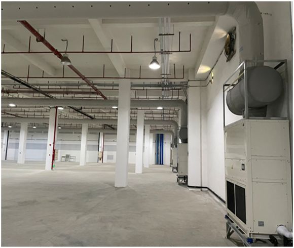 項目概況:該工程庫房高度約5m,庫房面積約2100㎡,溫度控制范圍:10℃至25℃之間,相對濕度35%至75%RH之間。采用風冷節(jié)能溫濕度調控設備(室外箱式風冷機組安裝于屋面,庫房內采用立式溫濕度調控風柜,接紡織纖維布袋送風系統(tǒng)),配智能群控系統(tǒng),短信報警功能,系統(tǒng)運行穩(wěn)定、安全性高。